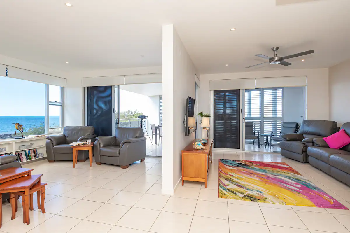Designed with elegance and comfort in mind, Beach House at The View Bargara features modern amenities and stylish interiors that blend seamlessly with the surrounding natural landscape. Each room is bathed in natural light, offering breathtaking vistas of the sea and lush greenery. Whether you are lounging on the balcony taking in the 270 degree views of Bargara and the Coral Sea, enjoying a barbecue with friends and family, or simply unwinding in the beautifully appointed living spaces (all with ocean views), every moment here is infused with serenity.